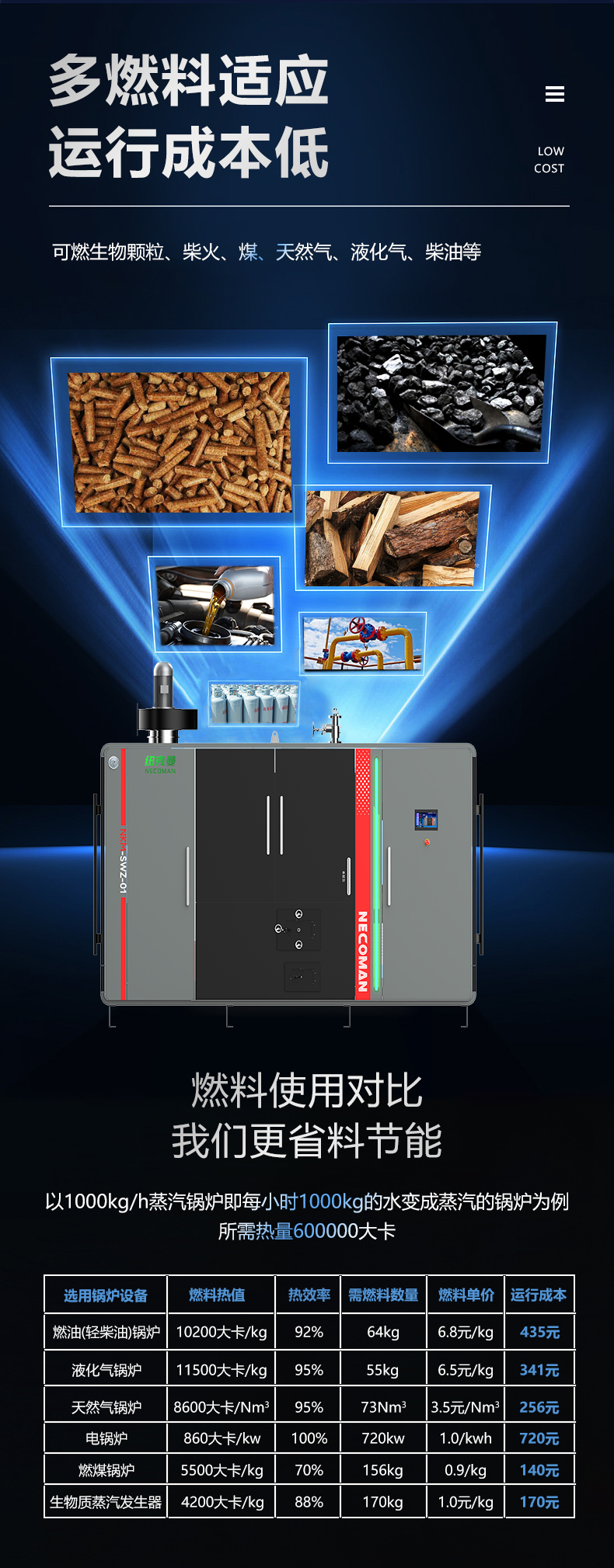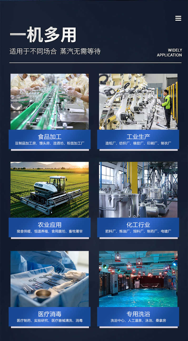 蒸汽量:6kg至6T;適用燃料:天然氣、油、生物顆粒;幾何容積<30L,免監(jiān)檢;大爐門設(shè)計,可燃木塊等木質(zhì)燃料,排煙溫度低、搭配多回程蛇形設(shè)計,壽命長,自主研發(fā)預制板結(jié)構(gòu),節(jié)省燃料;溫度、壓力、可定制,更多參數(shù)可致電15323300918...