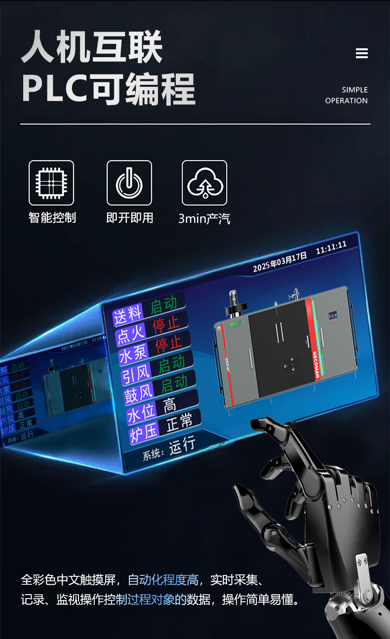 蒸汽量:6kg至6T;適用燃料:天然氣、油、生物顆粒;幾何容積<30L,免監(jiān)檢;大爐門設(shè)計(jì),可燃木塊等木質(zhì)燃料,排煙溫度低、搭配多回程蛇形設(shè)計(jì),壽命長(zhǎng),自主研發(fā)預(yù)制板結(jié)構(gòu),節(jié)省燃料;溫度、壓力、可定制,更多參數(shù)可致電15323300918...